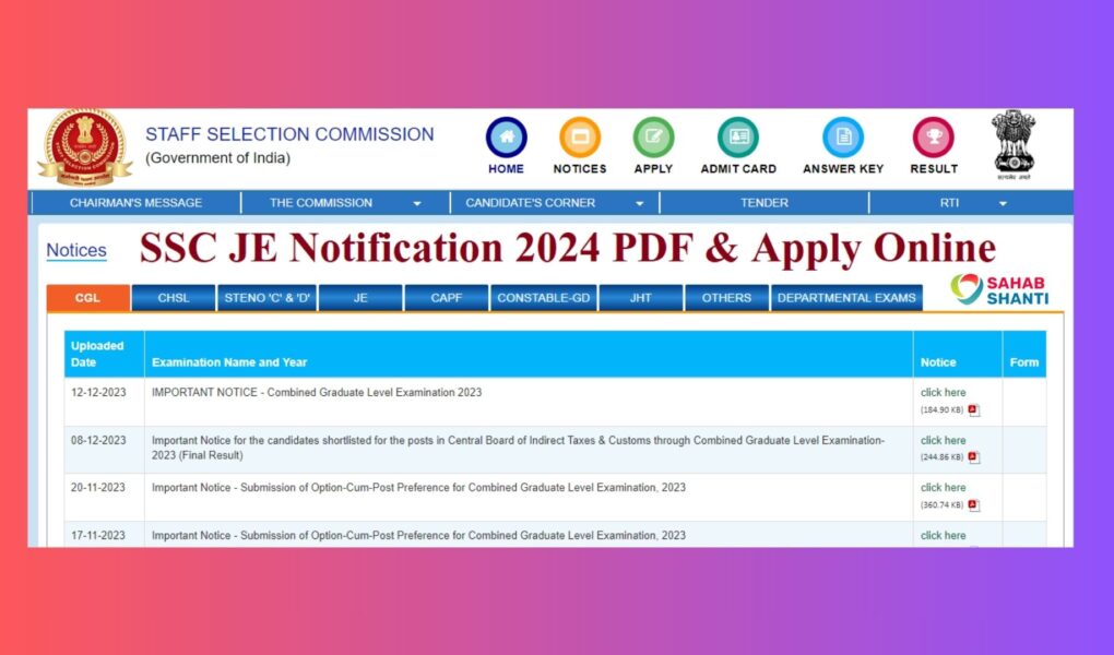 SSC JE Exam 2024 Application ऑनलाइन आवेदन उम्मीदवारों को ध्यान देना चाहिए कि उन्हें SSC जूनियर इंजीनियर परीक्षा 2024 के लिए के दौरान आयोग द्वारा निर्धारित 100 रुपये शुल्क का