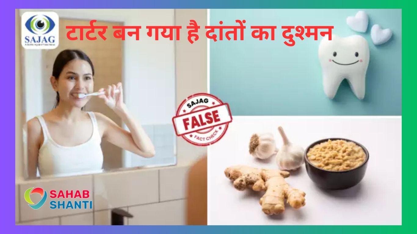 Home remedy to remove tartar and yellowness from teeth :- दांतों में हाइजीन का रोल हम सब समझते हैं। इस हाइजीन का असर हमारी सेहत पर भी पड़ सकता है। इसलिए दांतों में होने वाले टार्टर का इलाज भी किया जाना जरूरी है। मगर प्रोफेशनल हेल्प से पहले अदरक लहसुन नमक मिक्स का घरेलू उपाय आजमाएंगे? सजग फैक्ट चेक टीम ने इंस्टाग्राम पर किए गए दावे की जांच की है।
