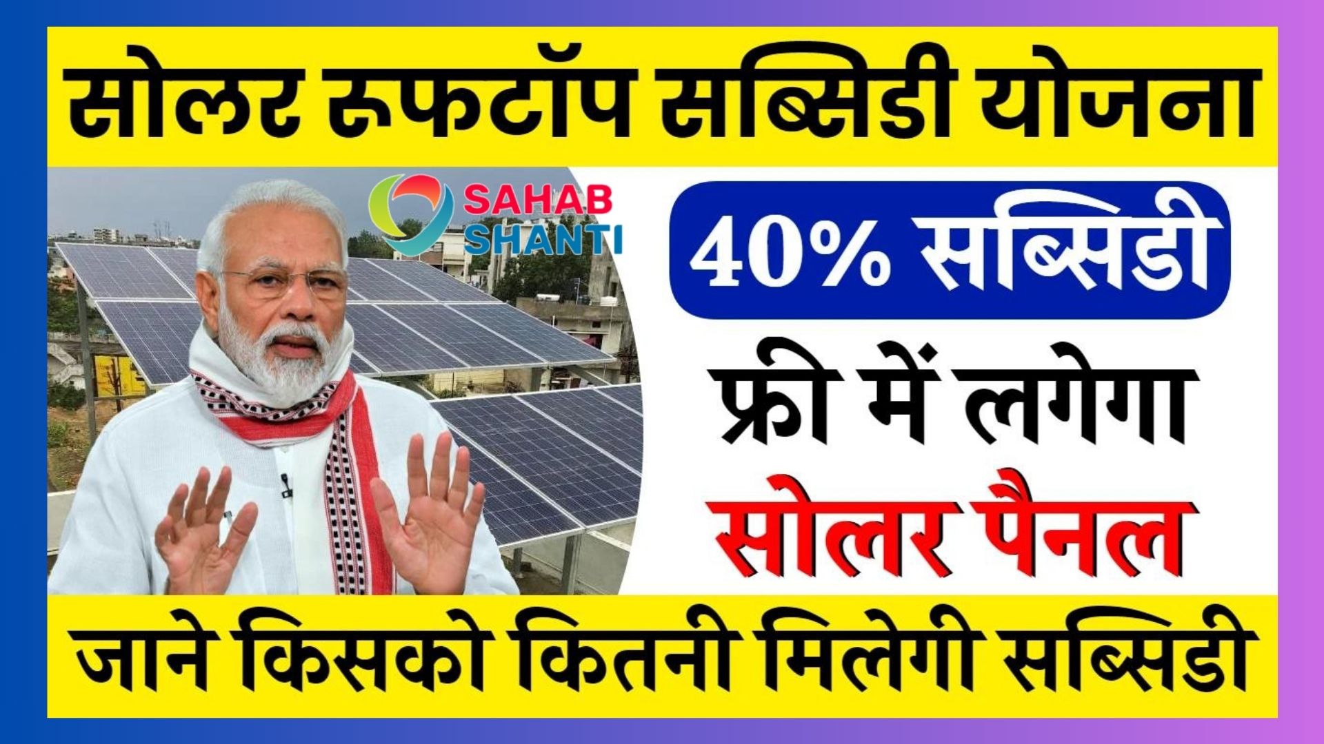 Solar Rooftop Subsidy Yojana in2024: सोलर रूफटॉप सब्सिडी योजना के द्वारा आप भरपूर बिजली का उपयोग कर सकते हैं और इसके लिए आपको भारी बिल भी नहीं देना होगा। जानकारी के लिए बता दें कि सरकार द्वारा सोलर रूफटॉप योजना को शुरू किया गया है जिसके माध्यम से लगभग 19 से 20 साल तक के लिए फ्री में बिजली का इस्तेमाल कर सकेंगें। लेकिन इस योजना का लाभ आपको तभी मिल सकता है जब आप अपना रजिस्ट्रेशन करते हैं। यहां आपको यह भी बता दें कि अपने घर की छत पर सोलर पैनल को लगवाने के बाद आप बिजली की बहुत ज्यादा बचत कर सकते हैं। आज के इस लेख में हम आपको बताएंगे कि सोलर पैनल लगवा कर आप कैसे बिजली की बचत कर सकते हैं। इसके अलावा हम आपको यह भी बताएंगे की योजना के लिए पात्रता, महत्वपूर्ण दस्तावेज एवं लागत और आवेदन प्रक्रिया इत्यादि।