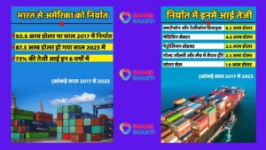 पिछले कुछ वर्षों में भारत से अमेरिका को एक्सपोर्ट में तेजी आई है। साल 2017 से 2023 के बीच एक्सपोर्ट में 36.8 अरब डॉलर की वृद्धि हुई है।