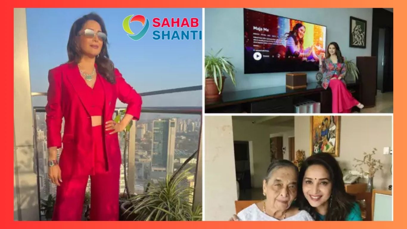 Madhuri Dixit showed a glimpse of her house worth Rs 48 crores :- धकधक गर्ल माधुरी दीक्षित 57 साल की उम्र में फैंस के दिलों पर राज कर रही हैं। उनके चाहने वाले एक्ट्रेस के बारे में जानने को लेकर एक्साइटेड रहते हैं, इस बीच हसीना ने खुद ही अपने आलिशान घर की तस्वीरें शेयर किए हैं। जिनमें मशहूर चित्रकार एमएफ हुसैन का आर्ट हर किसी का ध्यान अपनी ओर खींच रहा है।